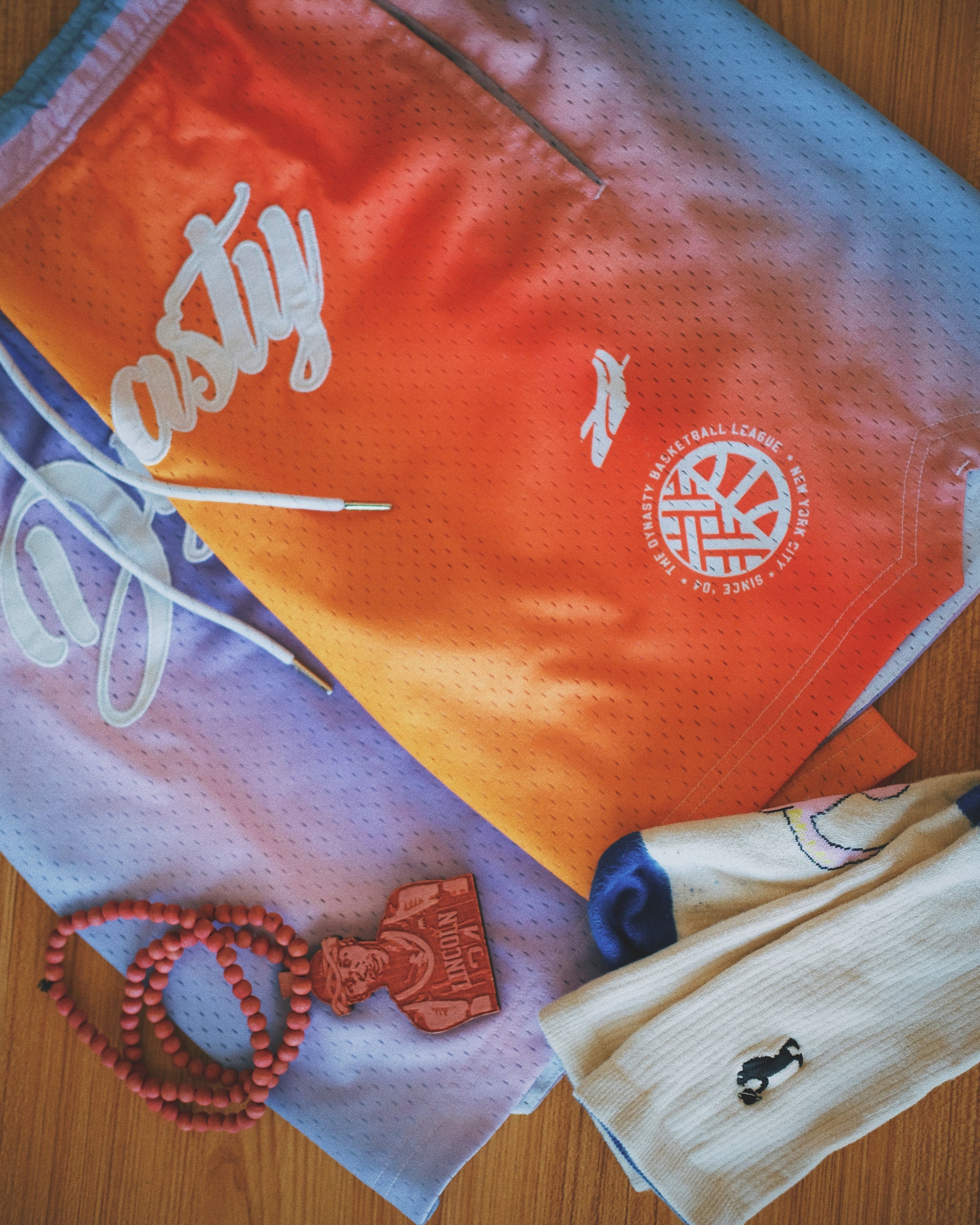 For the M.V.P., drawstring mesh shorts with two side pockets by Hemero. These are a medium weight, double-layer dry-wicking mesh short with a stretch to keep you moving. Sublimated design with embroidered "Dynasty" script.